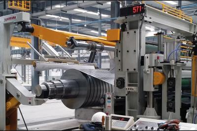 このプロセスは、ケイ素鋼コイルをアンコイラーにロードすることから始まり、そこでしっかりとクランプされ、ねじ切りの準備が整います。ストリップは張力制御ユニット (フェルト プレート、ベルト ブライドル、またはローラー タイプ) を通過し、スリッター ヘッドに入る前に一定の張力を確保します。高圧システムでロックされた高精度ナイフは、必要な幅に応じてストリップを複数の狭いコイル(マルチ)に切断します。バックテンション装置は、しっかりと均一な巻線を維持し、表面欠陥を排除します。セパレーターアーバーは、完成したコイルに巻き戻される前に、スリットストランドを整理します。ロボット システムは、オペレーターの介入なしに、工具を迅速に交換し、ナイフを洗浄し、エッジを検査できます。スクラップ管理システムは、不要なストリップセクションを効率的に除去します。最後に、完成したスリットコイルは梱包およびパレタイジングステーションに移され、バンディング、ラベル貼り、保管または出荷が行われます。